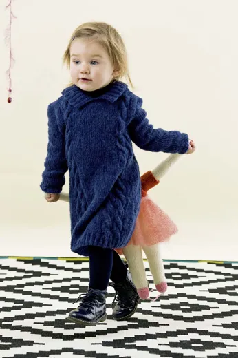 Warmes Kleid mit Kragen im Zopfmuster aus ALPACA SUPERLIGHT mit Alpaka superfine, Polyamid und Merino fine.