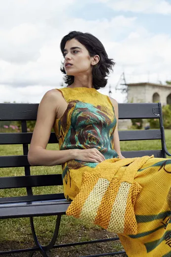 Tasche gestrickt aus WOOLADDICTS PRIDE mit Leinen, Baumwolle und Viskose.