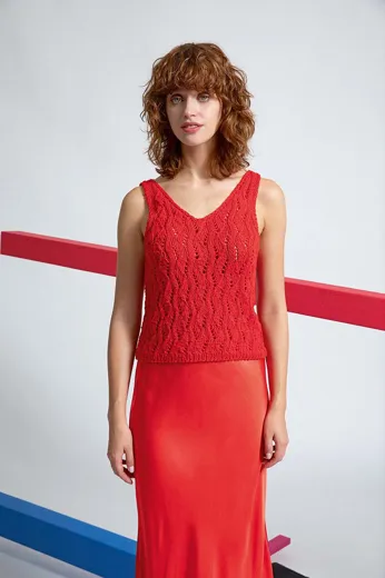 Modernes Top mit tiefem Rücken im Lochmuster gestrickt aus ORTICA aus Baumwolle und Brennessel.